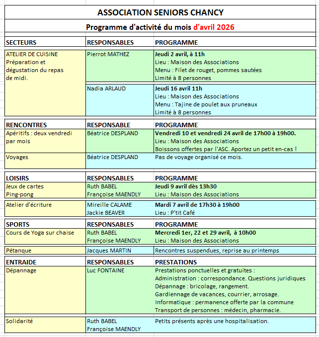 Association des seniors de la commune de Chancy